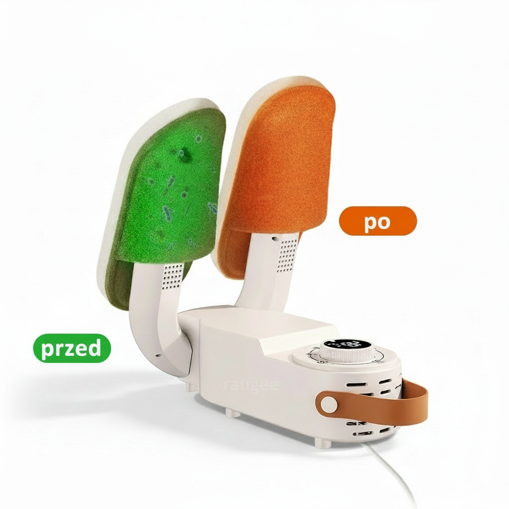 Zadbaj o maksymalną higienę swojego obuwia dzięki suszarce wyposażonej w specjalną technologię usuwania bakterii. Urządzenie wykorzystuje kontrolowaną temperaturę oraz ukierunkowany przepływ powietrza, które pomagają eliminować drobnoustroje rozwijające się wewnątrz mokrych butów. Dzięki temu obuwie staje się nie tylko suche, ale przede wszystkim czystsze, świeższe i zdrowsze w użytkowaniu.